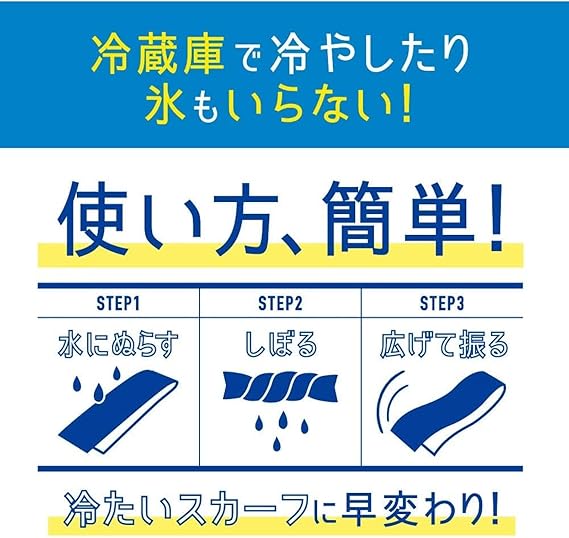水にぬらし しぼって振るだけで冷たいスカーフに