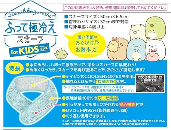 アイスノン ふって極冷えスカーフ すみっコぐらし 子供用 冷却 接触冷感 ひんやり 冷たい 首を冷やす 暑さ対策 UVカット