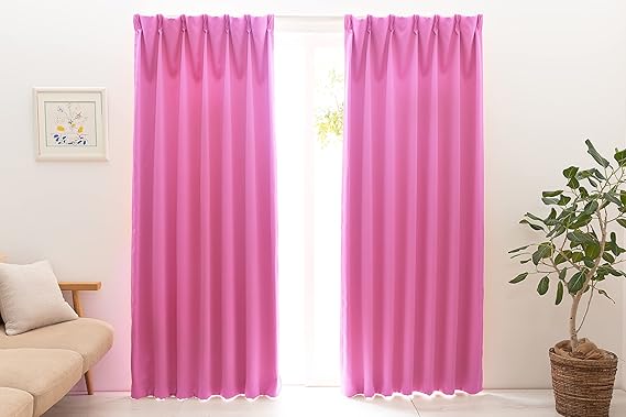 ユニベール 1級遮光 防炎 防炎ラベル付き 節電 省エネ 断熱 保温 日本製 無地 寝室 リビング カーテン 幅100cm×丈100cm 2枚 ベルーイ ピンク