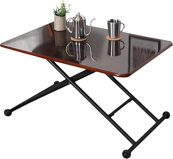 不二貿易 昇降式テーブル センターテーブル 幅90~109.5×奥行60×高さ11.5~70cm ブラウン ガス圧 無段階調整 キャスター付き 完成品 74710