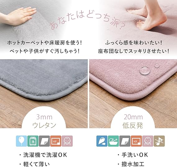 【組成】 表面:ポリエステル100% 中材:ウレタンフォーム(3mm) 裏面:不織布(滑りにくい加工)