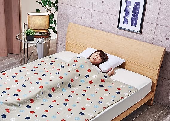 〇サクラをモチーフにしたオリジナルデザインをプリントした、肌に優しいコットン100%素材の電気綿毛布。〇ワイドサイズで大きいベットやマットでも充分な大きさ。〇頭寒足熱配線で足元はしっかり、胸元はソフトに身体を暖めます。〇切り忘れても安心、12時間自動OFFタイマー付き。〇操作しやすいスライド式温度調節。(暗い部屋でも見やすいバックライト付き)〇急に冷え込んでも快適、室温センサー内臓。(室温が約23℃以下になると、設定から自動で約3℃温度アップ)〇取扱説明書の記載手順に従いダニ退治ができます。〇コ