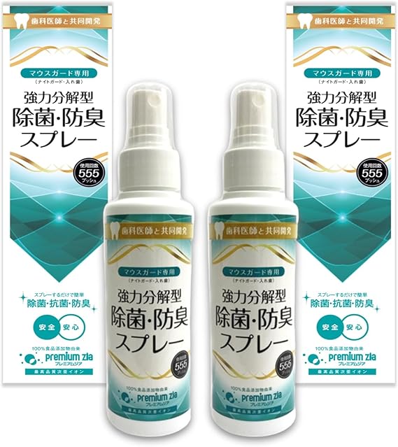 プレミアムジア マウスピース 歯科専売品 洗浄剤 マウスガード アルコールフリー 入れ歯 除菌 消臭 ウイルス・菌の不活化 食品添加物由来 非金属腐食性 非漂白性 マウスガード専用スプレー 100ml×2本