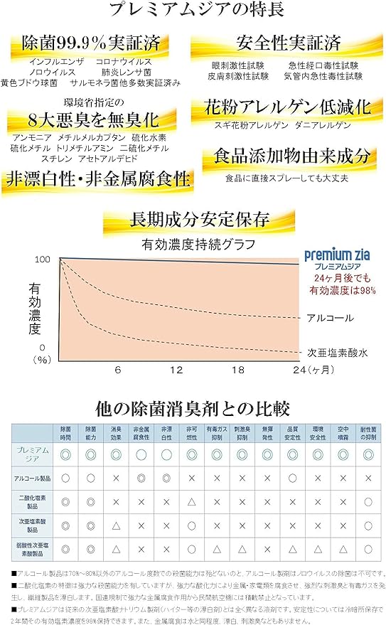 【エビデンスに裏付けられた除菌・消臭力】安定型次亜塩素酸イオンの力で、細菌やウイルス等を99.9%以上除菌します。さらに環境省が設定する8大悪臭の原因物質を分解・除去し、強力な消臭効果を発揮します。