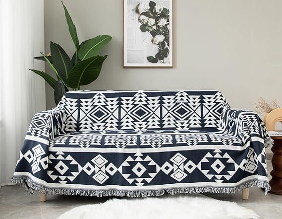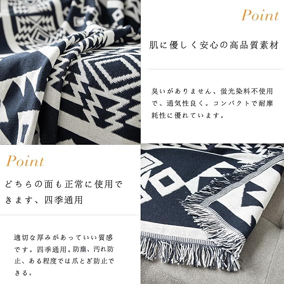 シンプルなデザイン フリンジ付き: 幅広い年齢グループに人気の北欧風、高級感UP。お部屋内のインタリアと合いやすく、使うと室内の雰囲気も明るくなりますぞ, 両面が違っていますが, どちらの面も正常に利用できます。飽きたときはベッドにかけたり多目的でつかえます。