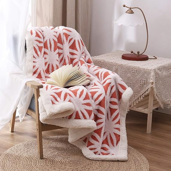 sledar(スレダー) 毛布 掛け毛布 ひざ掛け 羽織れる 大判 発熱二枚合わせ パイル シープ調 ふわふわ 丸洗いOK 抗菌防臭 防ダニ加工 北欧風 プレゼント 秋冬 (130x160cm,コーラル)