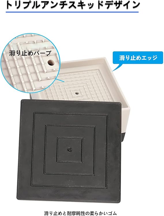 【防滑設計】:上部に三角錐を採用した滑り止めデザイン で、安定です。底面に滑り止めのTUP素材を採用、床に傷もつきにくく、静かでノイズレスです。