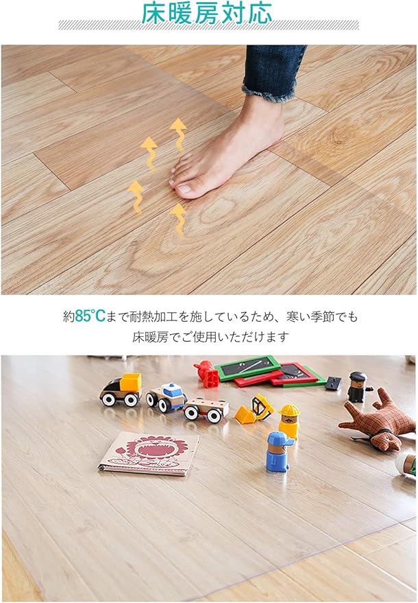 【拭くだけ】キッチンマット 透明 270×100cm クリアマット 1.5mm厚 拭ける PVCマット 床暖房対応 お手入れ簡単 台所マット ソフト エンボス加工 カットできる サラっとした手触り 清潔 ハードフロア/畳/フローリング対応