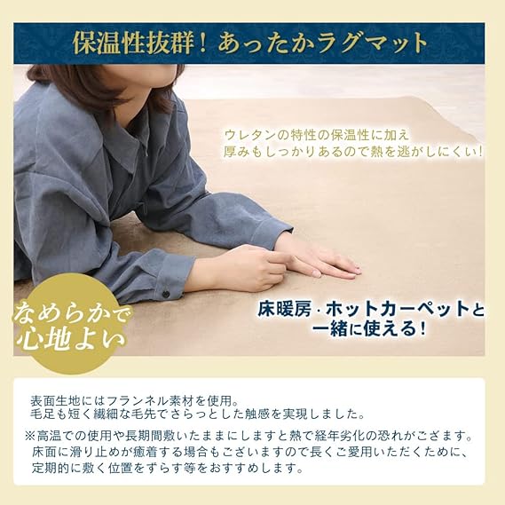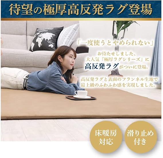 【クッション性抜群】厚さ約20mmの高密度高反発ウレタンを使用し、ラグの厚さが約25mmになります。