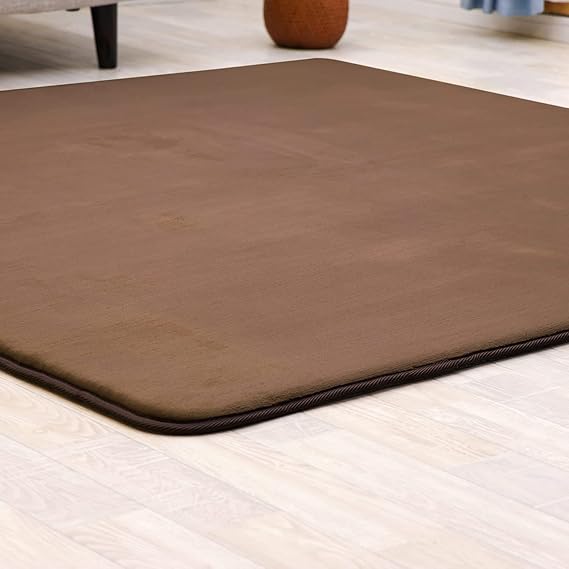 フリーリー ラグ カーペット 高反発ラグ 極厚25mm 140×200cm 抗菌・防ダニ加工 厚手 ラグマット オールシーズン 滑り止め付 マイクロファイバー サイズ (S無地・ブラウン)