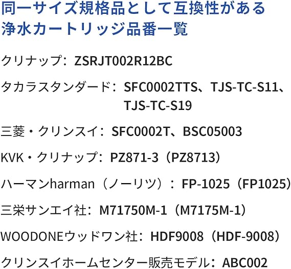 【浄水カートリッジ対応の水栓(蛇口)型番】F401 (S-F401)、F402(S-F402)、F404(S-F404)、F425(S-F425)、F425K、F425BS、F425KBS、F426(S-F426)、F426K、F427、F427