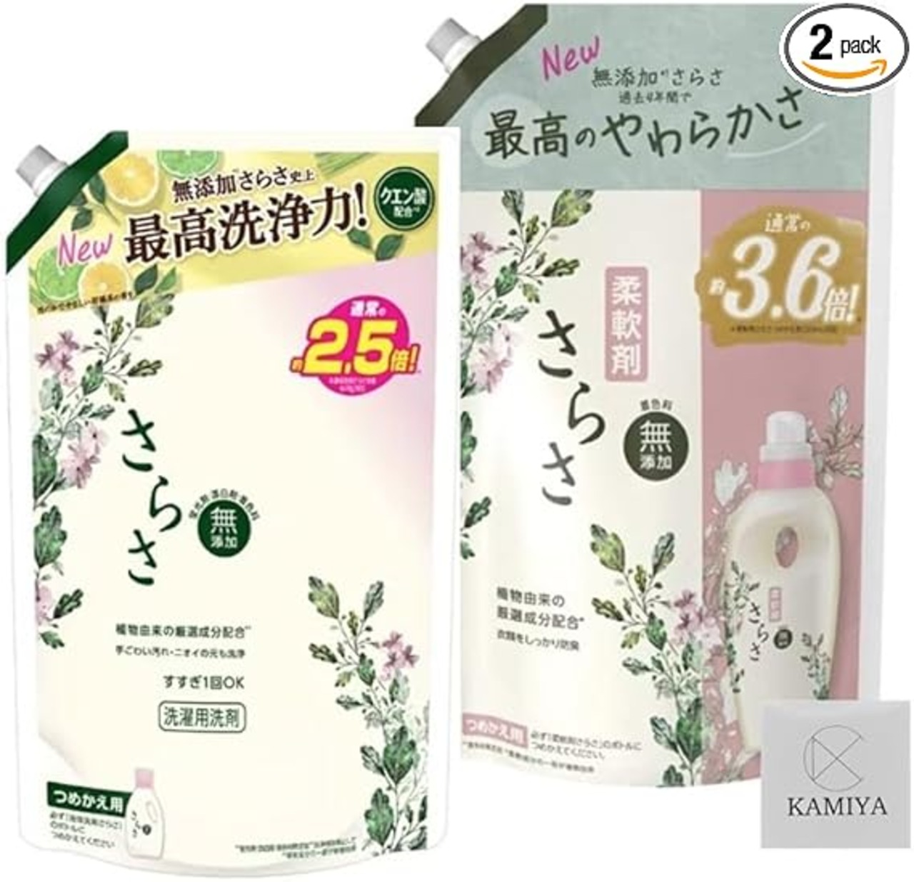 【まとめ買い】さらさ 洗濯 柔軟剤 洗剤 詰め替え 約2.5倍 + 柔軟剤 詰め替え 大容量 3.6倍 セット オリジナルステッカー付