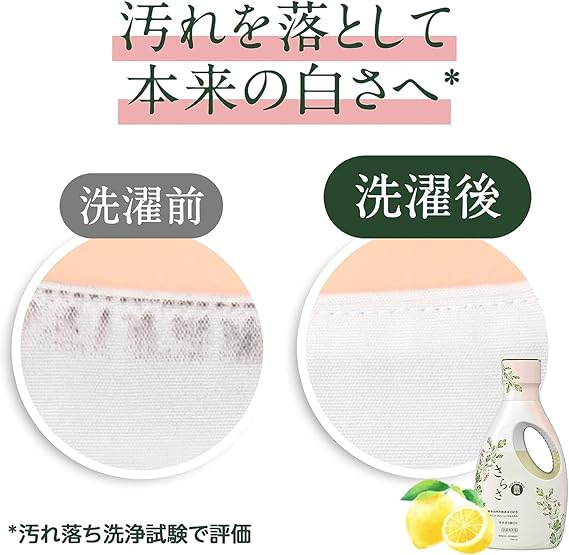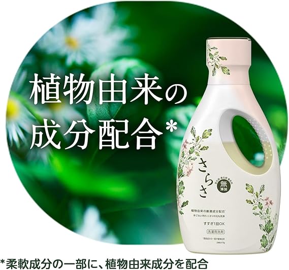 〈洗濯洗剤〉界面活性剤(25%:ポリオキシエチレンアルキルエーテル、アルキルエーテル硫酸エステル塩、純せっけん分(脂肪酸塩)、直鎖アルキルベンゼンスルホン酸塩)、安定化剤、pH調整剤、水軟化剤(クエン酸)、ケア成分(コットンミルク) * 、酵素 /* コットンミルク:コットンにも含まれる植物由来のケア成分のこと。