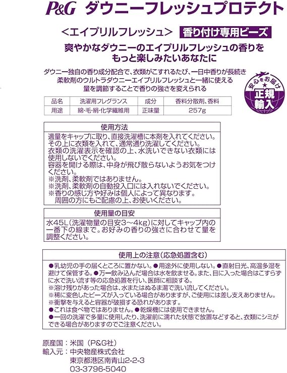 【正規輸入品】 ダウニー フレッシュプロテクト ビーズ 衣類の香りづけと防臭専用 エイプリルフレッシュ (春の太陽のようなフレッシュな香り) 257g