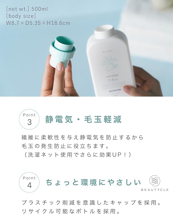 植物由来の柔軟成分配合。静電気、毛玉を軽減します
