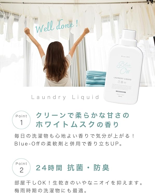 Blue-Off(ブルーオフ) 洗濯洗剤 ホワイトムスク ランドリーリキッド 500mL 部屋干し 抗菌 防臭 BLU-1-1