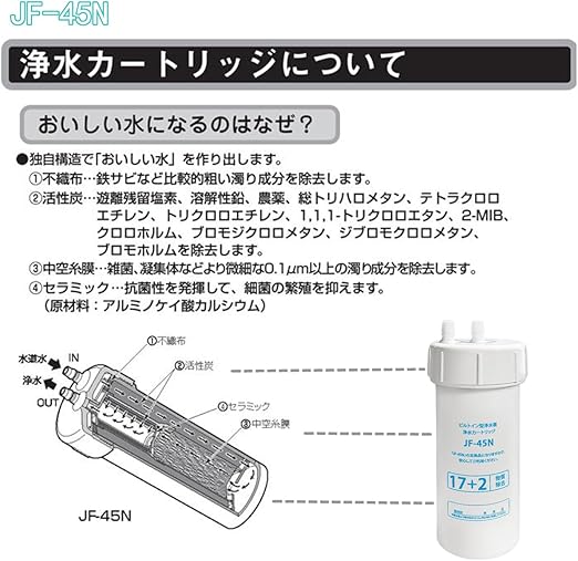 JF-45N 浄水器カートリッジ 17+2物質除去タイプ タッチレス水栓 キッチン用水栓 浄水器ビルトイン型 交換用浄水器カートリッジ (JF-45N)