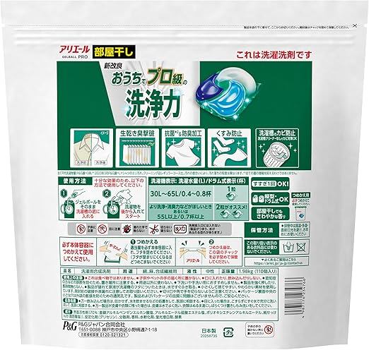 アリエール 洗濯洗剤 ジェルボール 部屋干し 110個 ニオイ・汚れの蓄積も鉄壁バリア 詰め替え [大容量]