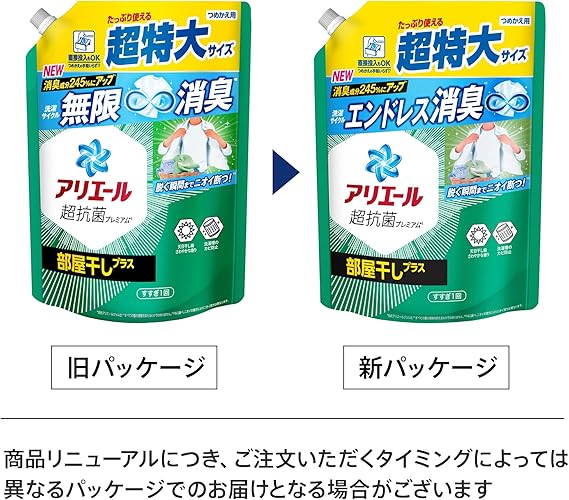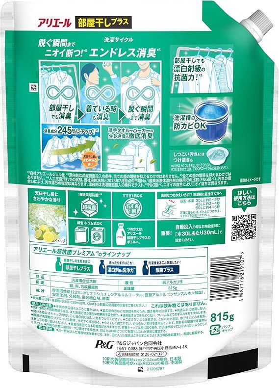 アリエール 洗濯洗剤 液体 部屋干しプラス 詰め替え 815g×6袋 部屋干しも生乾き臭ゼロへ [タテ・ドラム式OK] 【Amazon.co.jp限定】