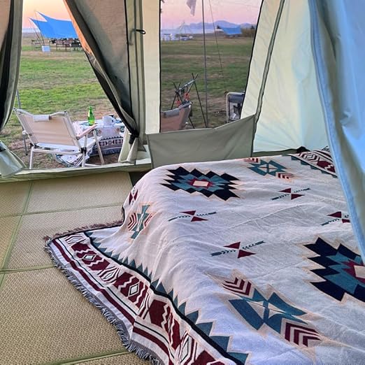 エルパソ ブランケット マルチ ラグ オルテガ柄 アウトドア 通年 通気性 触り心地 座椅子 130×180 (B, 180㎝×130㎝)