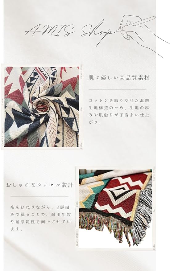 エルパソ ブランケット マルチ ラグ オルテガ柄 エスニック ボヘミアン 薄い 軽い 絨毯 年中使える 130*180 (D, 180cm×130㎝)