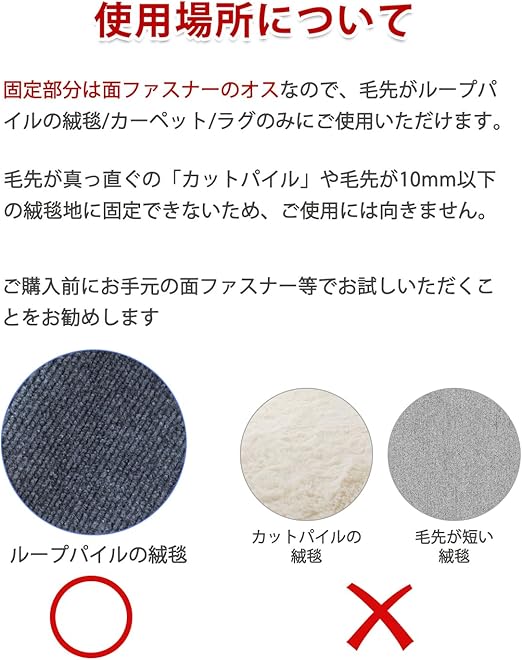 【事故防止】電線を面ファスナーのオスで絨毯に固定することで、電線につまづく事故を防げます。オフィスや家庭の配線