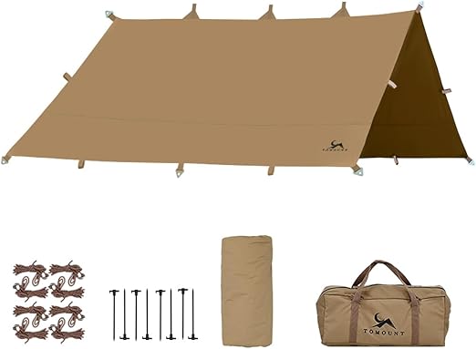 TOMOUNT タープ tc 正方形 ポリコットン タープ 4m x 4m ループ19箇所 焚き火可能 遮光 遮熱 難燃 キャンプタープ 天幕シェード (400cm*400cm)