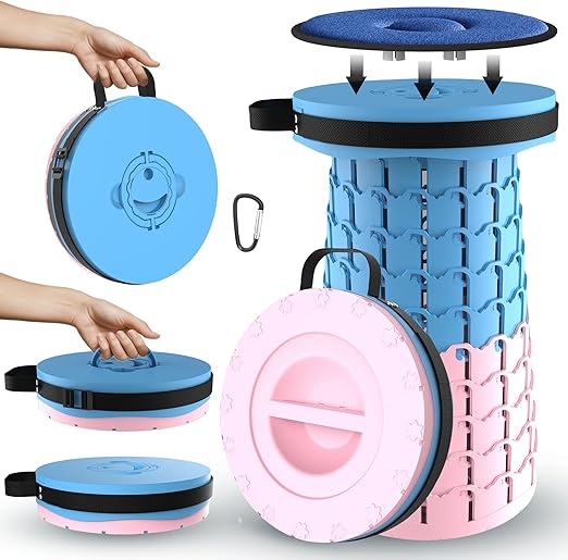 ALEVMOOM アップグレード 折り畳みいす 高さ調節可能 7〜50cm 耐荷重450kg 座面幅30cm クッションつき 第8代 折りたたみ椅子 折り畳み椅子 アウトドア椅子 アウトドアいす 折りたたみチェア アウトドア キャンプ 釣り フェス 運動会 観戦 屋内 屋外用 クッションとカラビナ含め(ブルーXピンク)