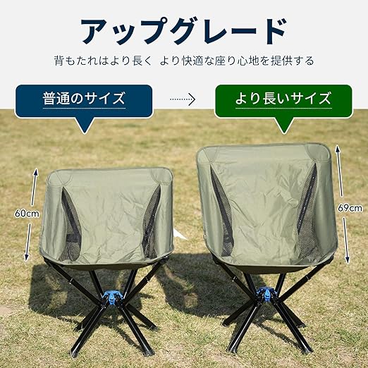 Fundango アウトドア チェア 2個 コンパクト 折り畳み 軽量 ワンタッチ キャンプ 椅子 ハイバック 携帯便利 簡易 耐荷重150kg 運動会 お釣り ピクニック グリーン1