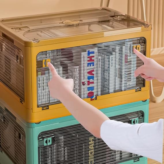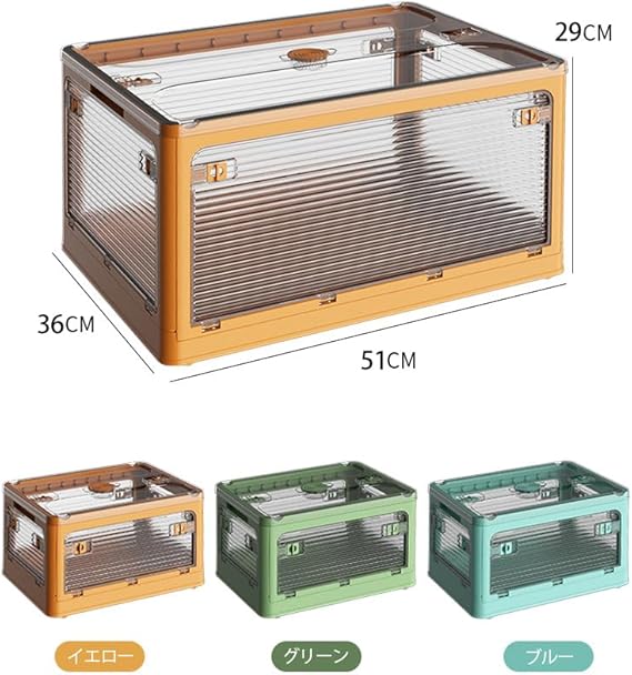 【折り畳み収納ボックス、コンテナー、ケース】Lサイズ 幅51×奥行36×高さ29cm 蓋付き、側面半透明