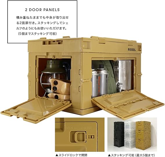 RIOSOL 積み重ねられる 収納ボックス 50L ストレージボックス 収納ケース 折りたたみ 多面扉 (タン, 1個)