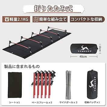 【強度のアップに成功】★2020年TOMOUNTはお客様の声に応じて、素材と縫製工程から、より安心・快適な設計に改良済み。よりベストなキャンピング心地を目指しています 。 ★【拡張ロック】支柱のサポートを強化し、それによって圧力下のキャンプコットの安定性を高めます。【高弾性コード】ヒモの弾力性と靭性が強化され、割れにくく、より安全です。【7075アルミニウムポール】航空材料は耐荷重が最大化しています、静止耐荷重150kg。表面の陽極酸化には噴砂プロセスを加えて、色褪せなく、防錆しています。