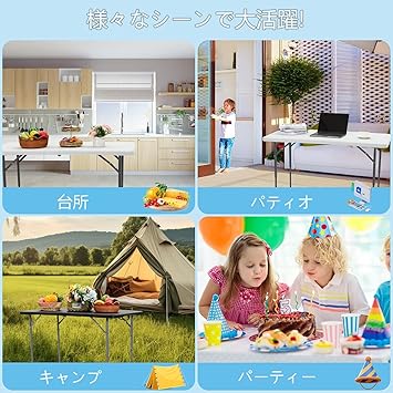 【アウトドア テーブル 】 4〜6人の大人を収容できます 白いデスクトップは防水性、防汚性、アンチエイジングであり、屋外料理のダイニングテーブル、ポーカーナイトのゲームテーブル、裏庭の誕生日パーティーのサービングテーブルとして使用します。持ち運びに便利だからキャンプ、BBQ、アウトドアに最適!屋内と屋外で使用できます、様々なシーンで大活躍。