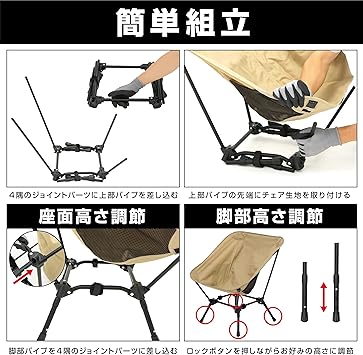 【簡単組立】4隅のジョイントパーツに上部パイプを差し込み、上部パイプの先端にチェア生地を取り付けていただくと組み立てられます【軽量・コンパクト】コンパクトに折りたたみが可能で、専用収納袋が付属しているので持ち運
