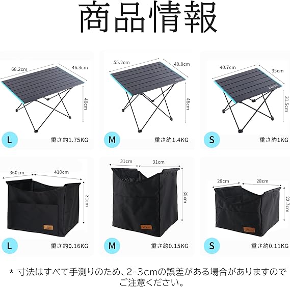 [Manatsulife] キャンプ テーブル コンパクト アルミ 折りたたみ 専用収納ポケット付き アウトドア ロールテーブル ハイキング BBQ 超軽量 ZDZ01 (S)