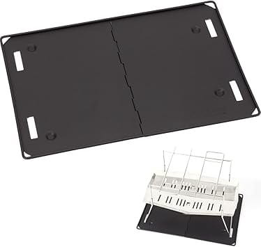 【TokyoCamp焚き火台専用サイズ】 焚き火台からこぼれ落ちる火種や灰、炭などをキャッチし、芝生やウッドデッキ等へのダメージを防ぐ焚火プレート。TokyoCamp焚き火台にぴったり合う専用サイズで、収納時は半分に折りたたむと、A4サイズになります。