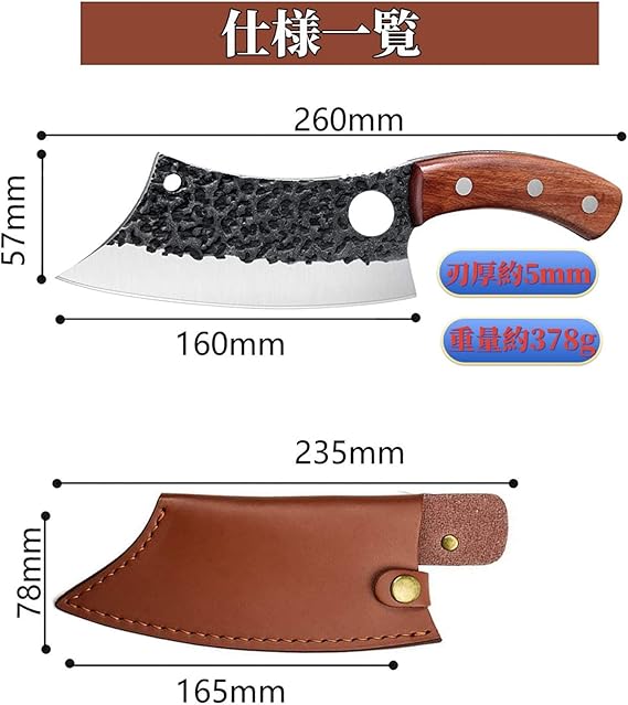 VGTEN アウトドアナイフ アウトドア用包丁 刃厚5mm フルタング構造 5Cr15MoV 鋼 天然ウッド 鍛造槌目 シースナイフ 家庭用 サバイバル キャンプ 調理バーベキュー 山歩き シース付