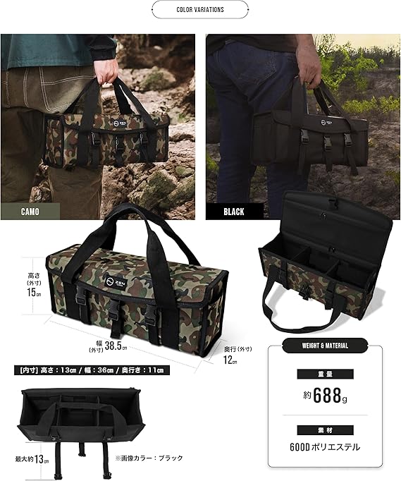 ZEN Camps マルチギアボックス ペグケース ソフトコンテナ ツールボックス キャンプ ペグバッグ (カモフラージュ)
