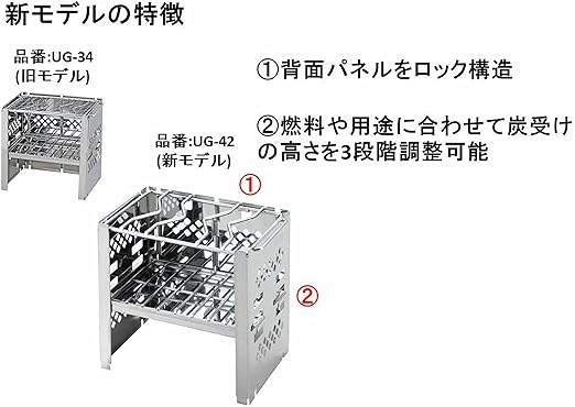 材質:本体・炭受け=ステンレス鋼、ゴトク・アミ・目皿=鉄(クロムめっき)、収納バッグ=ポリエステル