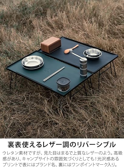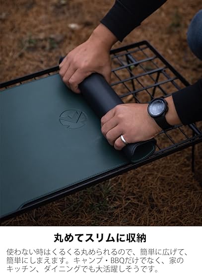 特徴:①フィールドラック だけでなく、多目的に使えるテーブルマットです。 ②表面質感がまるでレザーのようでテーブルをキズや汚れからの保護はもちろん、ガス跡なども防ぐことができます。③裏面はブラックでリバーシブルにご使用可能です。