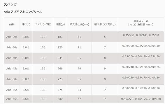ゼニス(ZENITH) Okuma(オクマ) ARIA Aria-40a(J) BULK 糸付汎用スピニングリール ナイロン4号150m付 箱無しタイプ