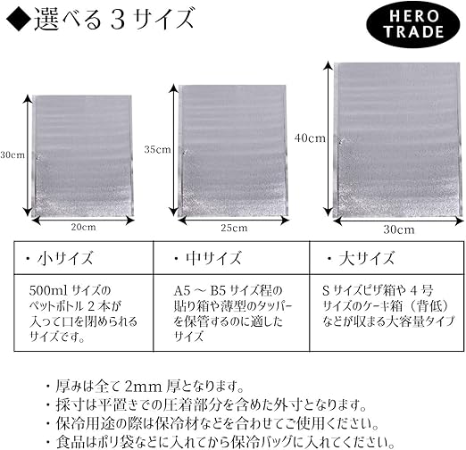 商品内容:保冷用アルミ蒸着袋 マチ無し小サイズ 20枚入り