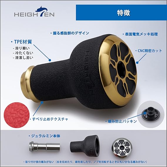 HEIGHTEN 24mm リール ハンドル ノブ TPE製 10g シマノ ダイワ 通用 (Shimano Type A) (Daiwa Type S)用 TPE Series (ゴールド) (425)