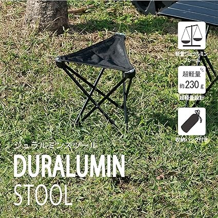 丈夫で持ち運びに便利な収納バッグ付きのジュラルミンスツールです。