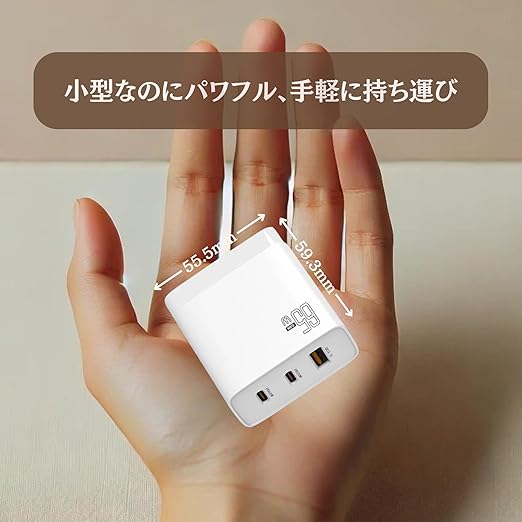軽量でコンパクトな折りたたみ式デザインで、持ち運びに便利です。3台のデバイスを同時に給電でき、最大65Wの出力を提供します。