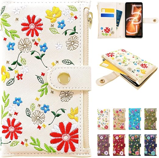 AQUOS R7 SH-52C A202SH 用 ケース カバー 手帳型 手帳型ケース SH52C SH-52Cケース SH-52Cカバー A202SHケース A202SHカバー SH52Cケース SH52Cカバー スマホケース スマホカバー おしゃれ花刺繍 アイボリー