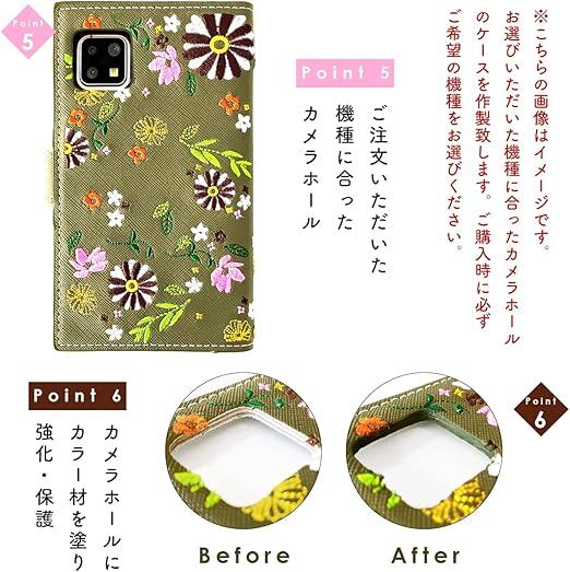 AQUOS R7 SH-52C A202SH 用 ケース カバー 手帳型 手帳型ケース SH52C SH-52Cケース SH-52Cカバー A202SHケース A202SHカバー SH52Cケース SH52Cカバー スマホケース スマホカバー おしゃれ花刺繍 オリーブ
