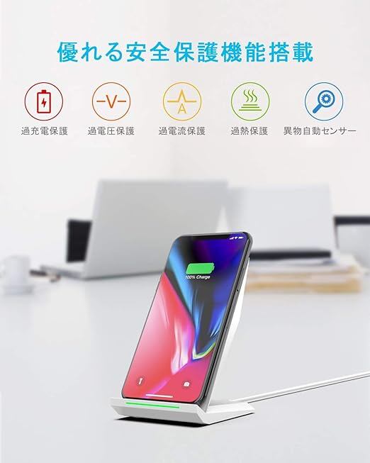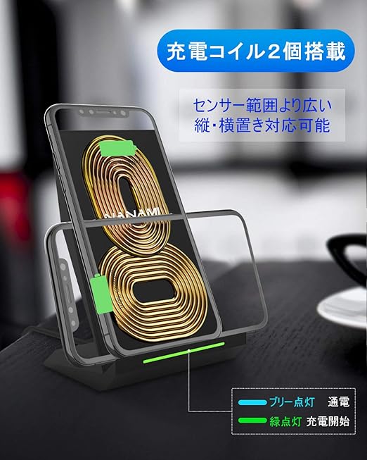 NANAMI ワイヤレス充電器 Qi急速 充電スタンド 2台セット 置くだけ充電器 最大15W出力 iPhone 16/15/14/13/12 (Pro/Pro Max/Mini) SE第二世代/11Pro/Xs (Max)/XR/8(Plus) Galaxy S24/S23/S22/S21(Ultra)/S20 Xperia 全機種対応 新生活アイテム 春のギフト 黒と白