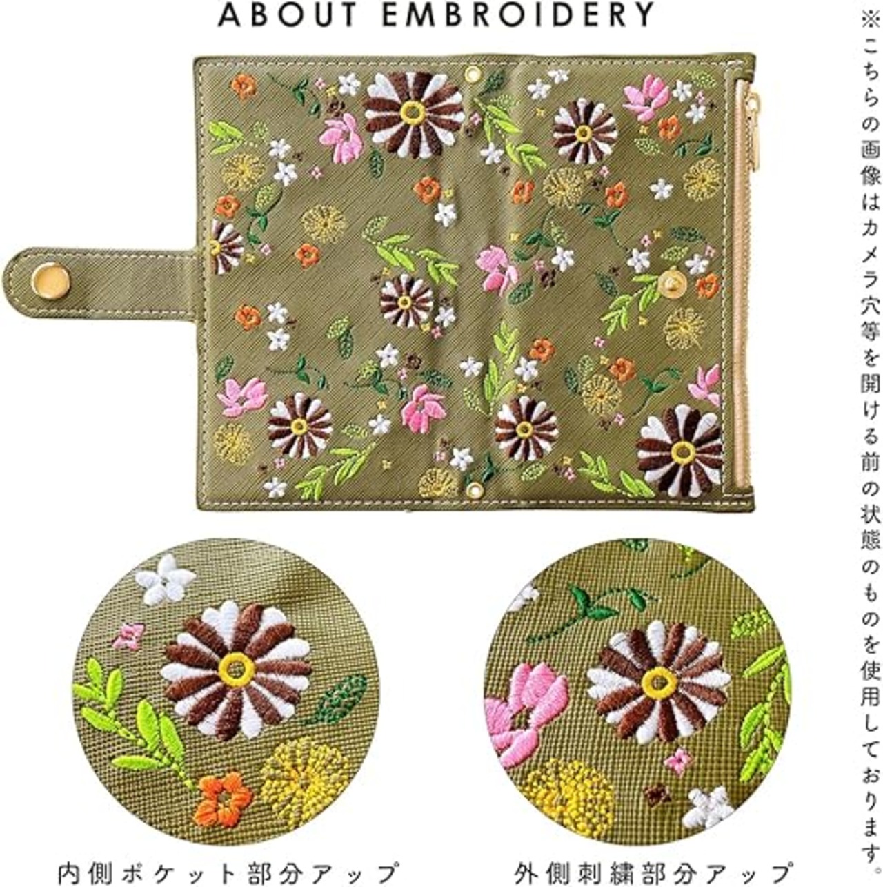 Xperia 5 V SO-53D SOG12 XQ-DE44 用 ケース 手帳型 カバー 手帳型ケース SO53D SO-53Dケース SO-53Dカバー SOG12ケース SOG12カバー XQ-DE44ケース XQ-DE44カバー おしゃれ花刺繍 オリーブ