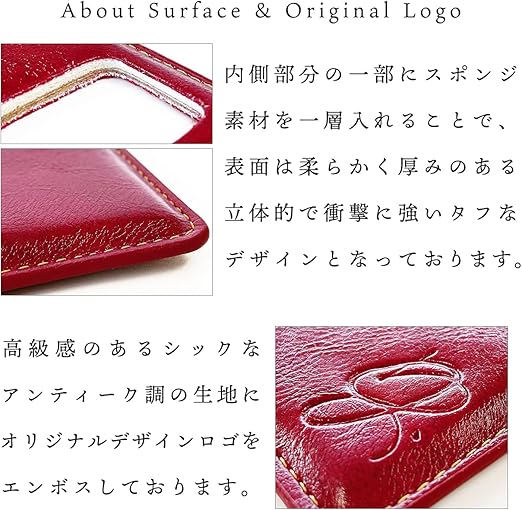 【高級感のあるシックなアンティーク調の生地を使用】内側部分にスポンジ素材を入れることで柔らかく厚みのある立体的で衝撃に強いタフなデザインになっております。